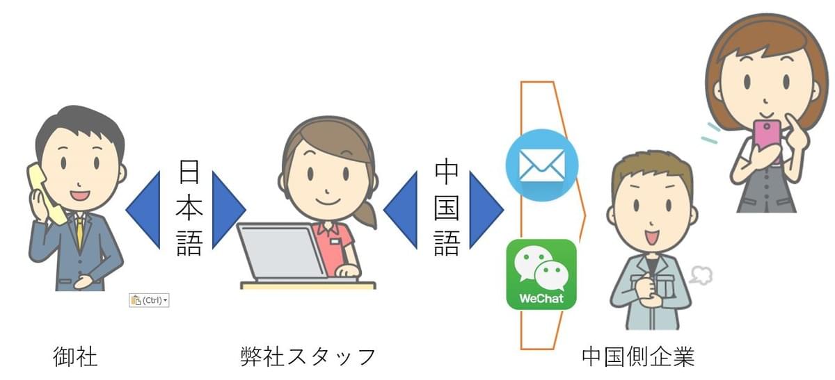 当社スタッフが貴社と中国企業の間でやりとりを